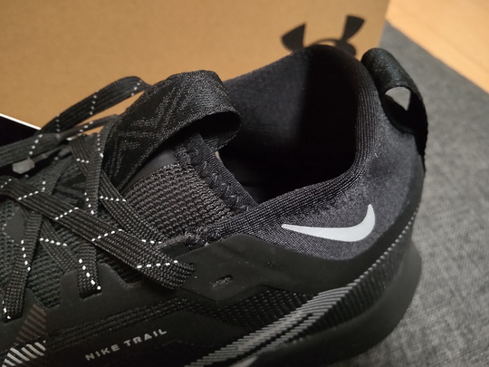 ナイキのトレイルランニングシューズ リアクト ペガサス トレイル 4 GTX GORE-TEXです。トレイルというとゴツさをイメージしますが、実物は軽量で柔らかでした。